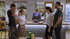 At Harolds, Max and Holly are upset by the news that Byron and Trevor are leaving, but Nicolette reminds them to keep it to themselves as Jane doesn't know