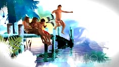 Notes: Though Rachel has been removed from two shots, she can still be seen sitting on the pier at the beginning of the sequence