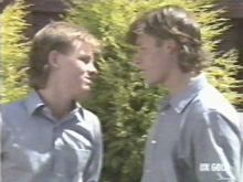Eileen is walking up Ramsay Street when she spots Max trying to fix his van. She congratulates him on his win and suggests that she lend him a recipe, if he’s ever going to be able to compete with Madge. Eileen then fishes for some gossip on Jim and Zoe, before mentioning that Mrs Mangel is going around the entire neighbourhood telling everyone that the contest was rigged. As she leaves to see Des, Gavin sits and watches her go into number 28.