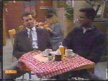 At the Coffee Shop, Sharon is listing everything she washed, and Harold reminds her that she shouldn’t eat and run. She shows him that she’s also cleaned the kitchen and asks if she can have some cake as her payment, then goes to leave. She assures him that she really did lose her money and he gives her a couple of dollars for the bus. She says she has a relative nearby where she can crash.