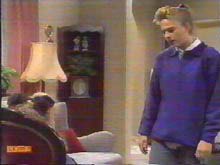Sharon arrives at number 28, looking for Bronwyn. Sharon is surprised to see Mike and Harold at the party, and Bronwyn is very shocked to see Sharon, explaining to everyone that it’s her little sister. Bronwyn takes Sharon aside and asks what’s going on. Sharon explains that since Bronwyn left, it’s been terrible at home, so she’s run away. She explains that Aunt Edie came to stay and their dad and brother are just making a mess and expecting her to tidy up behind them. Jane asks Bronwyn is everything’s ok, and Bron decides to take Sharon to number 32 and ring their father.