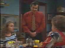 At number 28, Toadie is having breakfast, while Karl asks him if he knows where any of the computer books are. He explains what Marlene did and says that he once caught her trying to change the TV channel with a calculator. Toadie explains that he does computer studies at school, and could tutor Marlene and Sarah. Karl says that if he notices an improvement in their skills, he’ll pay Toadie. Toadie leaves, and Susan comes out for coffee. She thinks the tutoring is a good idea. They discuss the Lou situation, and Karl thinks that Lou will get over it pretty quickly, but Susan isn’t convinced.