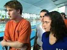 the pool, Billy finishes his swim and Caitlin and Mandi say
