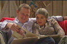 Taj is making up the sign for outside the Lassiter’s reception, but he’s distracted and has written ‘Licket Club’ and ‘Eat Children for Half the Price’. Stu assures him that Toadie knows his way around the hotel and everything will be fine. Just then, Toadie appears and tells Taj that he’s wired up Sam’s TV so that instead of Tootsie, he’ll see Taj’s amateur film. Taj is convinced that he’s going to get the sack now, but the boys go off to celebrate.