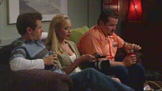 In Paul’s hospital room, Karl comes in and tells him off for not wearing his false leg. Paul says that he’s not going to wear it and he doesn’t want to get used to it. Lucy then comes in and says that she isn’t going to the party without him, she then picks up the leg and brings it over to an unimpressed Paul.