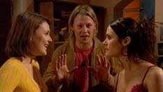 At the bar, Oliver arrives, only to be greeted by sarcastic comments from Frazer. He tells him to drop it, as he’s in no mood, having just left the Cammeniti sisters fighting. Frazer asks what it was about, and Oliver tells him it’s over Rocco’s money – Frazer wants to know what’s going on. In the office, Elle tells Boyd that she had no idea that Forrest was the girl he had a fling with in Tasmania. Boyd wants her to stop Glenn from visiting, as she’s clearly trying to track him down, but Elle says that she’s not like that. Boyd points out that she should help him, given what’s gone on between their families, and Elle says she’ll try and sort something out. Back in the bar, Frazer is surprised by the Cammeniti family dramas, and even more surprised that Oliver’s getting involved. He says that he just wants Carmella to be happy.