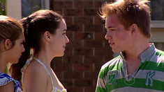 At number 26, Boyd arrives to tell Janelle what he found out from Jamie. Meanwhile, Sky and Caleb are sitting on the sofa, with Sky explaining that Boyd is just overprotective, but she and Janelle have minds of their own. Boyd then comes over to confront Caleb – his friends and family didn’t desert him, it was the other way round. Caleb doesn’t deny it, but he says that Sky and Janelle are his life now. Janelle looks worried and Sky says that he doesn’t need to choose between his old and new lives. Janelle tells him that he needs to get back to his old friends, or Stingray will have died for nothing. Caleb is taken aback as she hands the locket back to him and says that they should no longer see each other. Caleb turns to Sky, who admits that she doesn’t feel the same way, but Caleb agrees to talk to his friends and family, and he’ll also finish working on the memorial wall.