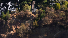 towards the edge of the cliff. Loose rocks start falling down the side of the cliff as they continue fighting with each other, before a terrible scream