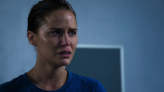 is crying and clutching her injured side as she heads over to the garden bed, nestling what is left of the flower into the dirt before collapsing on to the