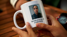 leaving Ramsay Street. She takes the opportunity to open Levi's present and laughs as it is revealed to be a mug with a work ID photo of herself on it