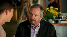 Leo arrives at no. 32 to talk to David about Chloe's engagement, having already heard the news earlier. Clearly hurt by the announcement, he tells his