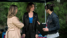 As Melanie and Jane go to join in, Wendy and Nicolette spot and them, immediately concerned that Jane has arrived to put an end to the protest. Jane tells