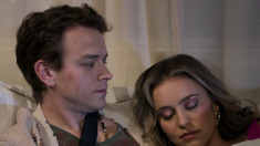 At Krista's apartment, she and Seb have fallen asleep on the couch. As he wakes up, he looks over at her and starts to stroke her hair.