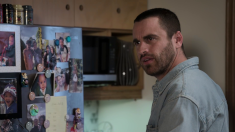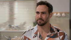 looks confused as Nic reminds him that it's the anniversary next week. She puts her hand on his shoulder as she realises that he'd forgotten.