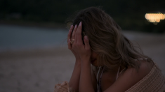 Krista sits alone on the beach and breaks down in tears.