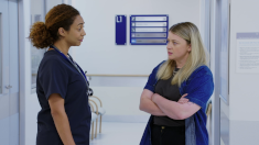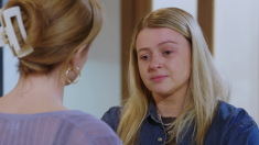 it. As Cara becomes increasingly tearful, Nicolette hugs her.