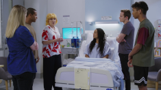 In the waiting area, Stevie tells Cara that Dr Tucker, the neurologist, is on her way and will do a series of tests to determine if there are any