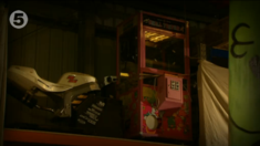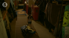 In 2011, Callum Jones and Sophie Ramsay visited the old marketplace which was based in a warehouse near to his Great-Grandmother's former house in Patterson Hills in a bid to trigger memories about his mother. Remembering visiting the marketplace with his Gran, Hilda, once busy with rows of stalls and tables, including one selling popcorn, Callum recollected that whilst his Gran liked to visit the second-hand stalls, he was more interested in the games. As he told Sophie, Callum remembered that it was on one such game, a skill-tester that his mother won him the toy monkey he'd seen in his recent dreams of her. After uncovering row upon row of old games, Callum spotted the skill-tester upon a high shelf and climbed a nearby ladder in order to reach it. As he did, the shelving unit it he had rested the ladder against began to shake. Grabbing the handle of an old motorcycle ride, Callum fell from the ladder, with the bike falling on top of him. Having called for an ambulance, Sophie phoned Callum's guardian, Toadfish Rebecchi however received no answer, instead calling friend, Sonya Mitchell who, unbeknownst to Sophie, was Callum's mother. Knowing the warehouse, Sonya raced to them, arriving shortly before the paramedics, who rushed Callum to Erinsborough Hospital.