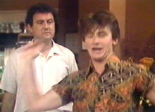 No 28 - Lounge: Jim and Des sit with Des as he tries to work out how he can continue to financially live in the house. Max arrives and insensitively makes a joke about the wedding being called off. Jim brings the conversation back to Des’s living arrangements and Max suggests getting a lodger. Daphne prepares to leave with Shane following her. Max still angry at her from the previous evenings comments makes remarks about her being a stripper – Daphne then realises he is Shane’s father and snaps back before leaving.