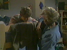 Pacific Bank: Julie is serving at the counter Mrs. Brown who is in the bank with her daughter Josie. Julie checks her account and then calls over Des who explains Mrs. Brown’s account is overdrawn by 300 dollars. Outside a man takes a lot of interest in what is going on around the bank and watches intently as he enters into the bank. Mrs Brown makes some excuse as to why her account is overdrawn and also gives her sympathies about Des’s break up with Lorraine. Des makes the comment that whole of Ramsay St must know by now about it.