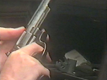 The suspicious man observes where the cameras are located before Julie directs him over to another counter. Julie asks Des about a lift home as her car is in repair – fellow cashier Marilyn Temple laughs at Julie’s ploy to be with Des. Outside the suspicious man gets into his car where another man is waiting for him. The first guy opens the glove compartment and pulls out a handgun. He tells his accomplice that they’ll rob the bank in the morning.